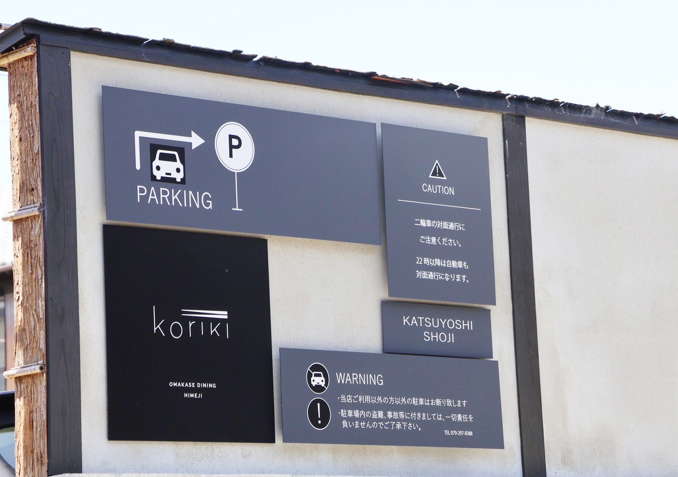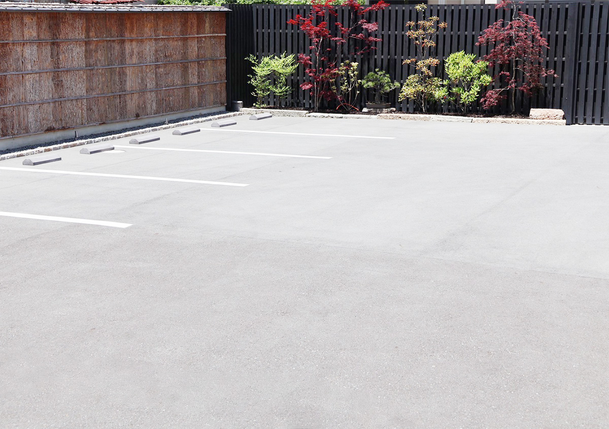 お車でお越しのお客様には、店舗から80メートル先の右側に、10台分の駐車場をご用意しております(駐車場は看板の裏側になります)。